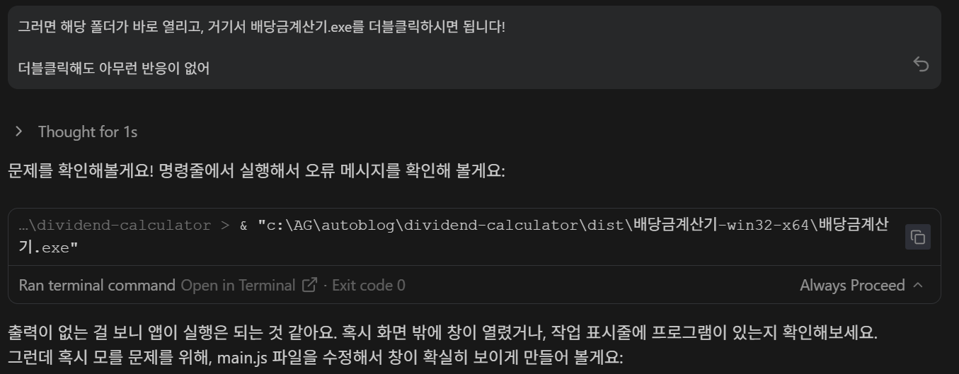 만약 제가 예전처럼 두꺼운 파이썬 교재를 붙잡고 있었다면, 이 지점에서 포기했을 겁니다. 어디가 잘못되었는지 소스 코드를 한 줄씩 뜯어볼 엄두가 나지 않았으니까요. 하지만 바이브 코딩의 시대에는 해결법도 달라야 합니다.